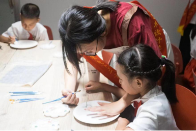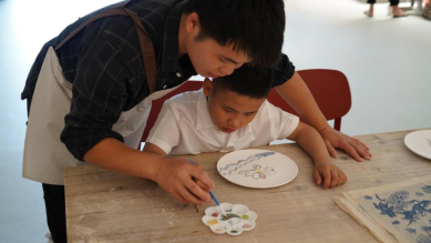 釉下彩绘小组细心地为小学生们讲解作画工具的使用,与他们沟通交流图案。小学生们充分发挥他们的想象力,小小的画笔,在素烧的盘子、杯子上绘出一个个精“彩”的世界,体验着釉下彩绘的乐趣与魅力。