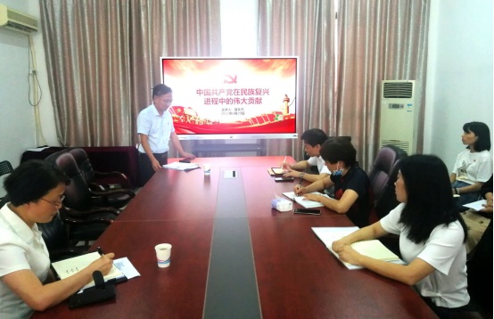 6月29日上午,康文杰副校长在437ccm必赢国际官方网站党员会议室做题为《中国共产党在民族复兴进程中的伟大贡献》的党史学习教育专题党课,437ccm必赢国际官方网站党政领导班子成员、师生党员及财务处党支部全体党员参加党课。