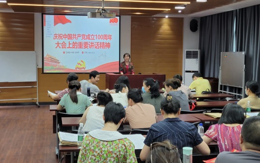 许秀萍书记从“四个伟大成就回顾党的百年光辉历程“和“九个必须展望中华民族伟大复兴的光明前景”深刻阐述了习近平总书记“七一”重要讲话的重大理论创新。许秀萍书记指出,习近平总书记在庆祝中国共产党成立100周年大会上的重要讲话,是一篇光辉的历史文献,提出了一系列重大理论创新,并寄语广大青年和号召全体中国共产党员,要以实现中华民族伟大复兴为己任,增强做中国人的志气、骨气、底气,不负时代,不负韶华,不负党和人民的殷切期望!