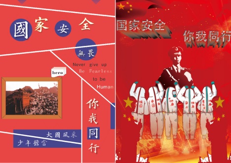 活动中,大家兴趣高涨,纷纷通过美术作品、设计作品及短文诗歌等方式来进行宣传,希望通过自己的作品来为大学生安全教育工作贡献一份力量。对于国家安全的稳定,尽管大家的表达方式不尽相同,但期待的态度却是一致的。有同学表示“为自身能够身处平凡的如今极为庆幸”,也有同学表示“要为国家安全和中华民族的伟大复兴贡献出自己的一份力!”