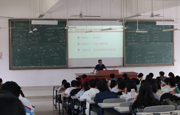 10月23日,下午2点15分,在437ccm必赢国际官方网站连江校区,马克思学院讲师团的林胜平老师,为师生们开展“新时代社会主义主要矛盾转化的哲学依据和现实意义”的理论宣讲。讲座在连江校区的诚信楼大阶梯教室(3)顺利举行,艺术设计系全体提交了入党申请书的师生和入党积极分子都参加了这次讲座。