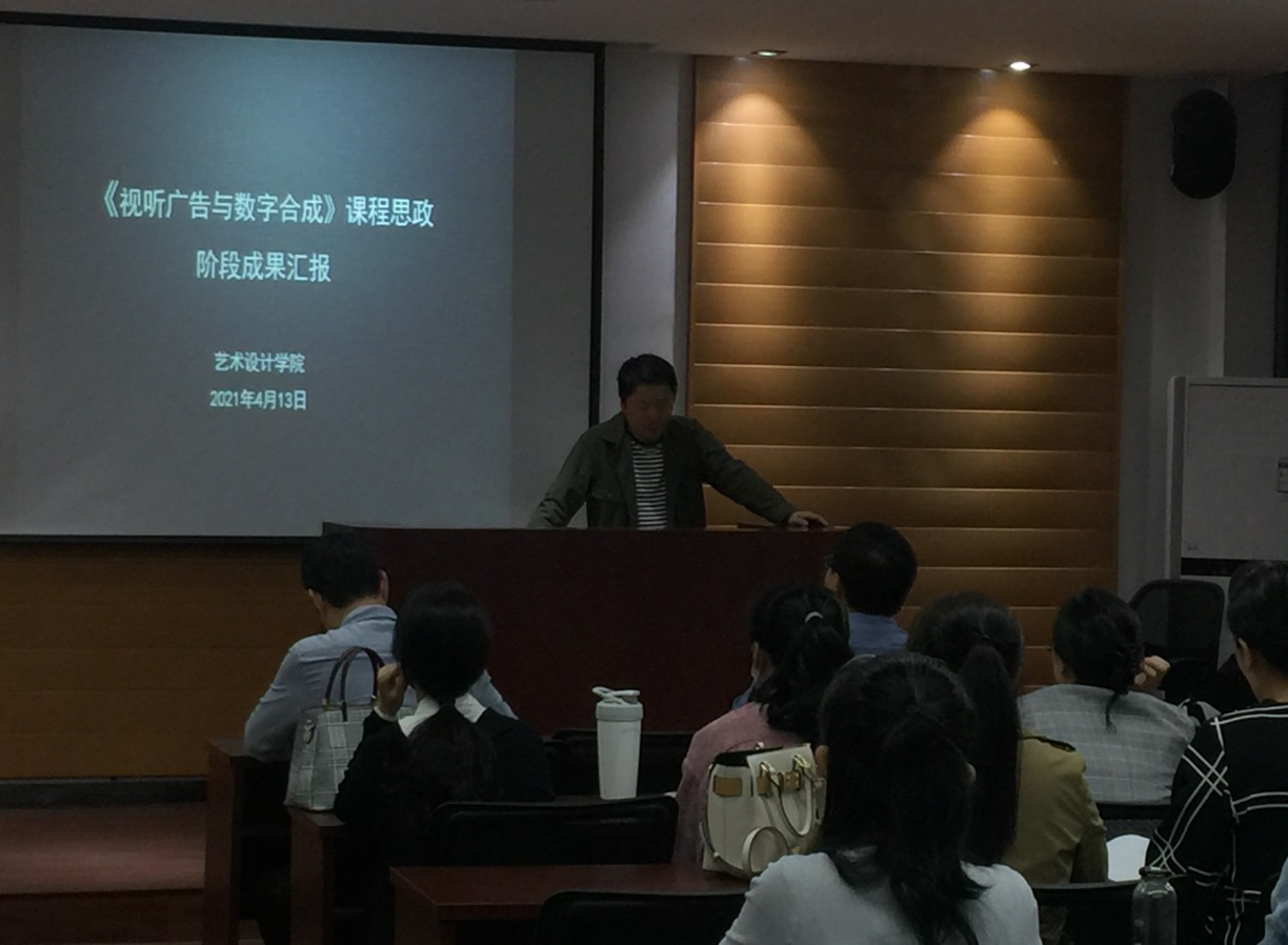 叶林心院长首先介绍了必赢官网课程思政项目的进展情况,强调了课程思政在艺术设计教学中的重要性,范治鸣、孔明两位老师就所承担的《视听广告与数字合成》、《设计色彩》两门校首批立项的课程思政项目的建设情况、建设进度、建设成果、建设心得等方面进行了汇报。汇报结束后,教务科郭竞科长针对老师所提出的疑问对我校课程思政的相关指导性文件进行了解读;教务处庄惠明处长充分肯定了437ccm必赢国际官方网站课程思政建设方面所取得的成绩,鼓励大家建设出更多具有艺术特色的课程思政项目和精品课程,争取为我校在国家级课程建设方面“零突破”作出贡献。最后,叶林心院长为学院下一阶段课程思政建设布置了具体的任务。