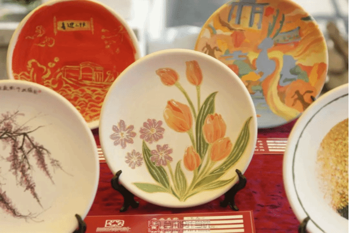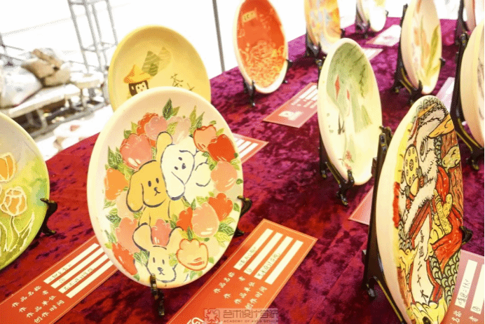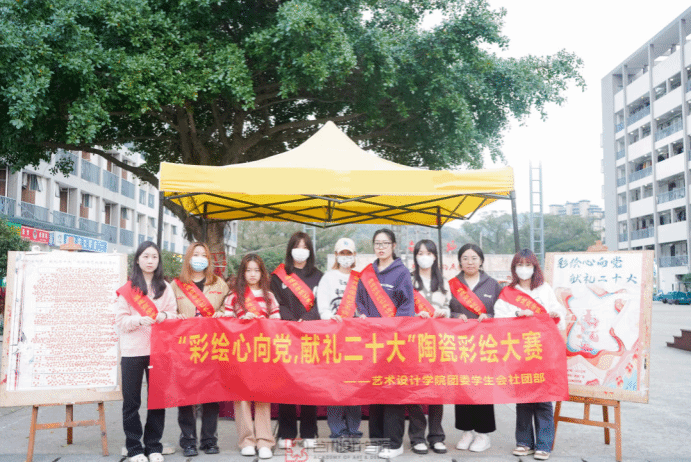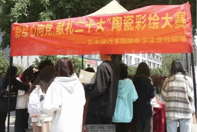 为学习宣传贯彻党的二十大精神,2023年3月9日,437ccm必赢国际官方网站团委联合校陶艺协会于青春广场举办“彩绘心向党,献礼二十大”陶艺彩绘作品展。