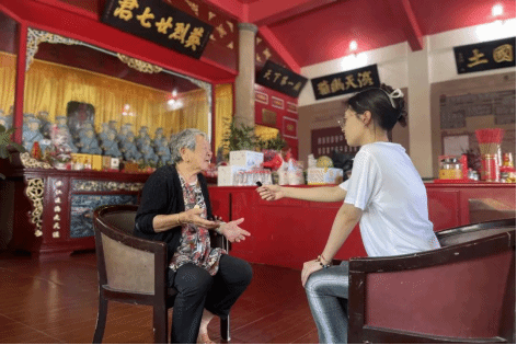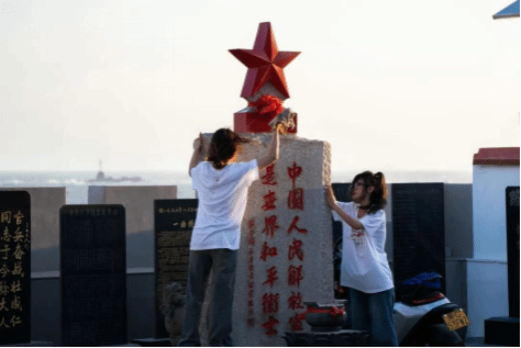 “天下第一庙”因无僧无尼、无佛无神,供奉着解放军烈士而得名。曾恨(幼名阿兴)筹钱建庙、修建陈列馆、寻找烈士及其家属,以惠安女特有的虔诚,践行守护英雄的初心。实践队瞻仰叶飞将军亲题“为了人民,死的光荣”烈士纪念碑,听讲烈士为保卫“西沙湾”、为保护幼女“曾阿兴”壮烈牺牲的英勇感人事迹,并开展庙宇清扫志愿服务,用感恩的心擦拭每一块石碑,厚植爱国情怀,传递“曾恨惠女情”。