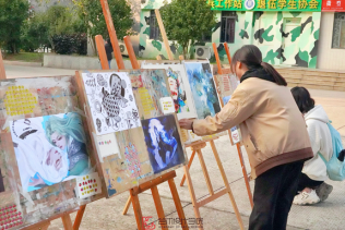 本次画展共展出作品15幅,内容涵盖了风景、人物、动漫等多种绘画题材。这些画作或细腻入微,或大气磅礴,或充满生气活力,或富有创意想象,每一幅作品都包含着同学们对艺术的热爱和追求。路过的同学纷纷被画展所吸引,驻足为自己喜欢的作品贴上一枚贴纸表示肯定与鼓励。协会成员表示将继续秉承艺术传承与创新的理念,为同学们带来更多精彩的艺术活动。