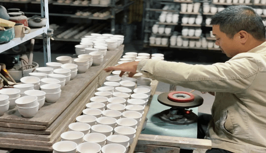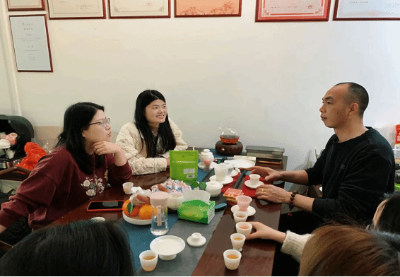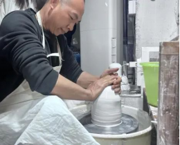实践队成员深入德化与陶艺大师面对面交流学习,拜访了“薄胎”技艺大师——陈鹏程先生,与大师进行面对面的交流后,实践队成员充分感受到陶艺大师对传统陶艺文化的传承和坚守,了解到大师通过几年的反复试验,于烧制的陶瓷上还原了明代的“孩儿红”,是在原有瓷色的基础上加入一定配比的南红和朱砂进行调制。陈鹏程大师在现场展示了瓷器的“拉坯”流程,在展示过程中还为学生们讲解陶瓷的制作工艺,包括瓷土的选择、成型、雕刻、上釉和高温烧制等环节。在人生经历上,陈鹏程大师为我们阐述了他的人生经验,并总结出“生活艺术化,艺术生活化”的态度,以此激励着实践队员。