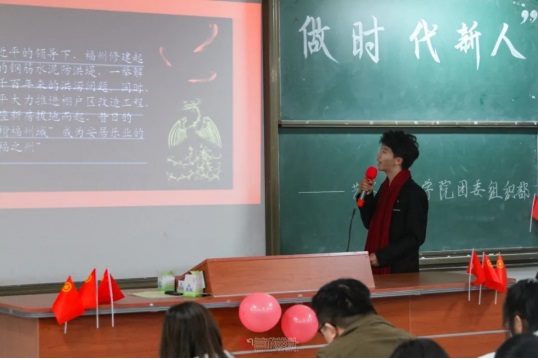 选手们声情并茂分享阅读红色书籍后的身心感受,并结合PPT、音乐等多媒体手段,突出演讲的流畅性和感染力,将学习内容更好地展示在观众眼前,为现场观众个盖更好的诠释学习心得。比赛中,选手们慷慨激昂的阐述着自己的阅读感受,其中说到《习近平与大学生朋友们》是我们学习贯彻习近平总书记关于青年工作重要思想的鲜活读本,“年轻人要‘自找苦吃’”“只有到社会中与群众打成一片、扭到一起后,产生了社会责任感,才能获得真知灼见”等金句,使同学们真切感受到了总书记对青年一代的殷殷期望和谆谆教导。
