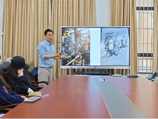 副院长周海彬对学生创作初稿进行详细指导