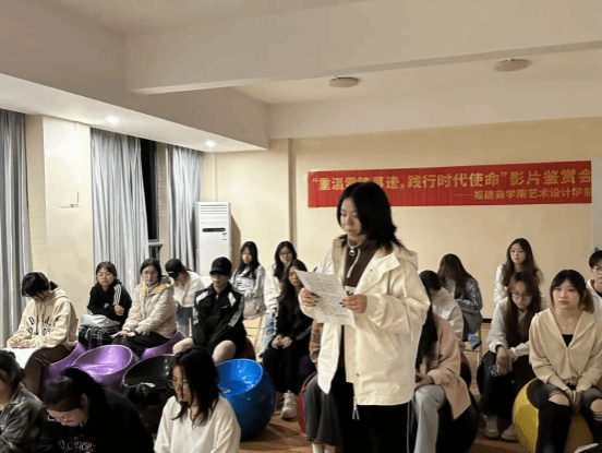 在交流环节,2024级周祺妍同学从“工匠精神与专业学习”的角度,分享了雷锋日记中“做一颗永不生锈的螺丝钉”对自己参与乡村振兴设计项目的启发;徐敏溱同学则结合影片中雷锋雨夜护送老人的片段,讲述了参与社区墙绘志愿服务的感悟。