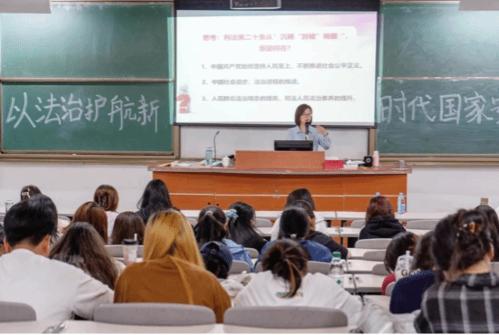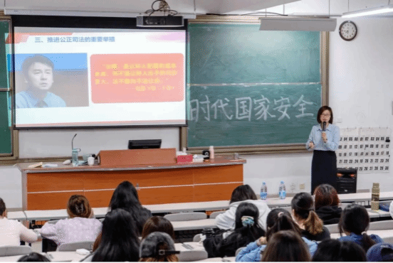 吴蕴君老师以“国家安全教育日”为切入点,结合《中华人民共和国国家安全法》核心要义,阐释了国家安全的本质内涵。她紧扣党的二十届三中全会提出的“法治是中国式现代化的重要保障”,强调全面依法治国是新时代国家治理的深刻革命,必须发挥法治“固根本、稳预期、利长远”的保障作用。
