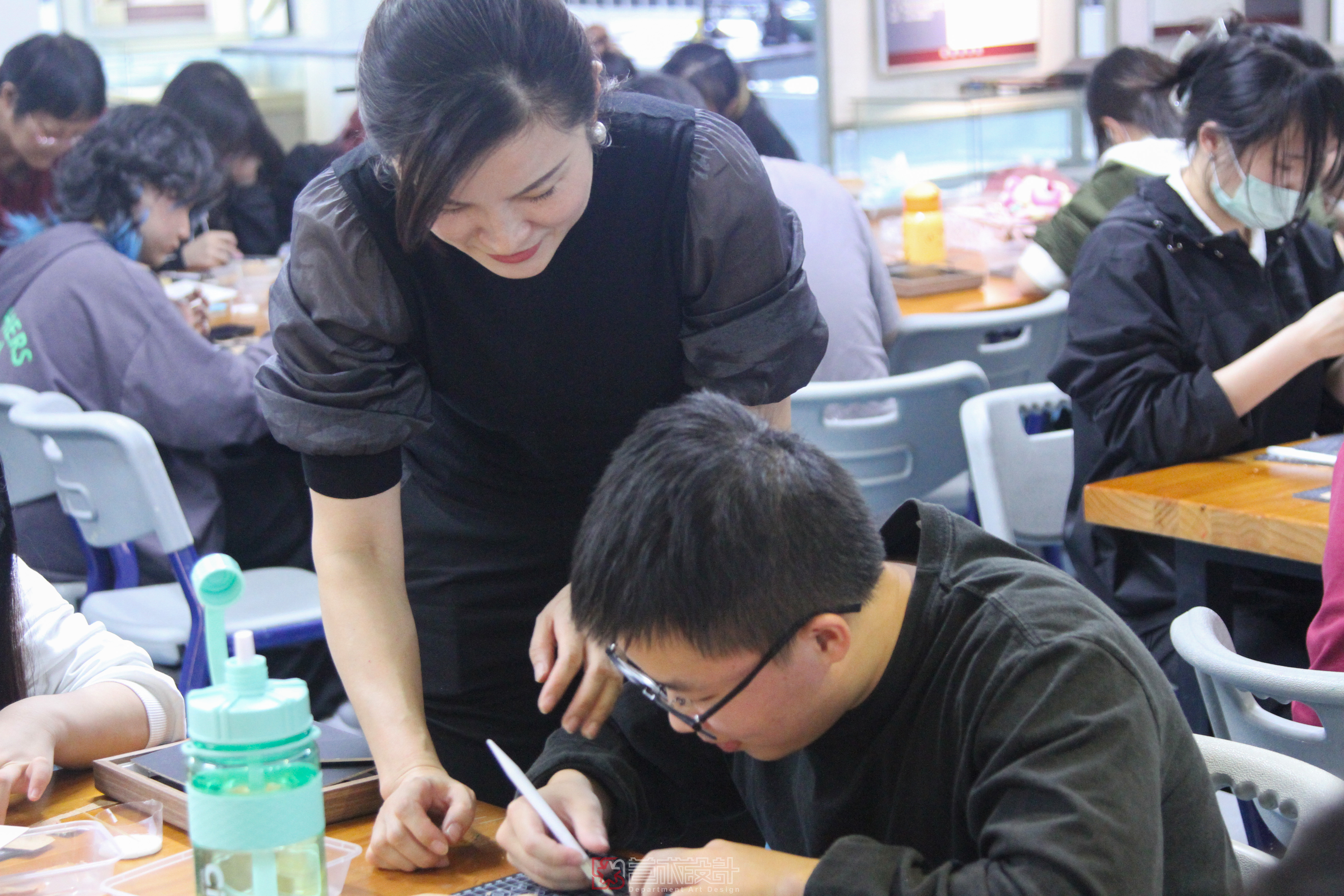 郭丽老师以传承人的视角详细讲解了软木画的历史起源、发展现状、制作技巧,随后熟练地进行示范,当一件件复杂精美的作品出现在眼前,同学们亲眼看见非遗传承人郭丽老师的软木画制作过程后,才见识到这项技术的不易,惊叹于老师的技艺,同时对于软木画的兴趣愈加强烈。随后,同学们上手尝试,发挥自己的灵感,结合软木画技术,开始创作实践动手设计自己心目中的软木画。郭丽老师则在同学们身边悉心指点,让想法不受技法的限制,皆是制作出了让人满意的作品。同学们纷纷表示受益匪浅,愿意多加学习软木画技术,为非遗的传承贡献自己微薄之力。