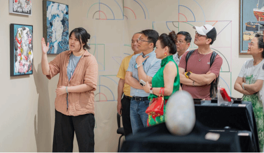 嘉宾们在校党委书记吴访益、校长程灵、副校长萧罡和学院领导班子的陪同下参观了展览,他们对本次展览的作品大为赞许,同时也提出了一些建设性的意见和建议。