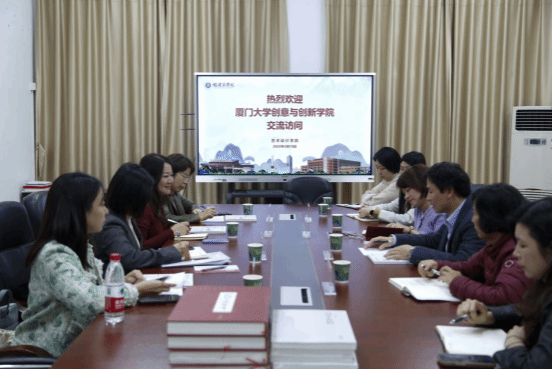2024年4月10日下午,厦门大学创意与创新学院党总支副书记庄淑娟一行四人来院调研交流。学院党委书记郑苏青、副院长周海彬以及涉及调研主题的相关业务工作人员参加座谈会。会议由周海彬副院长主持。