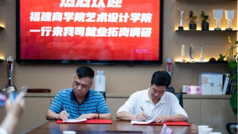 福建省工艺美术有限公司张光华总经理和必赢官网院长叶林心进行校企合作签约
