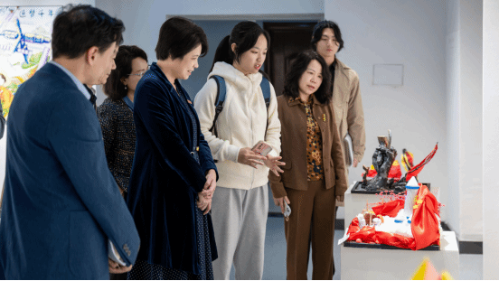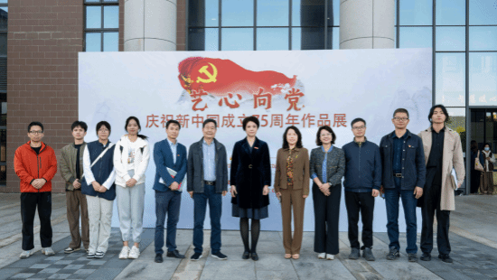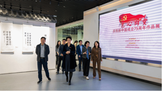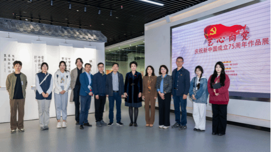 2024 年 11 月 26 日,由校党委宣传部、437ccm必赢国际官方网站联合主办的“艺心向党”——献礼中华人民共和国成立七十五周年作品展隆重开幕。校长程灵、校党委副书记徐晓丹、宣传部副部长杨炎梅等应邀参观指导,院党委书记郑苏青、院长叶林心及相关人员陪同。