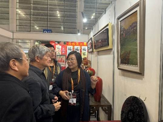 必赢官网展位在博览会的第3233-3234号,展示漆画、漆器等艺术精品,这些作品不仅体现了漆艺社成员的高超技艺,也展示了437ccm必赢国际官方网站漆艺教育的深厚底蕴,受到了到会嘉宾的热烈关注与好评。福建省商务厅、侨联以及脱胎协会等重要领导亲临展会现场,这不仅体现了政府对传统文化传承的重视,也体现了对漆艺教育非遗传承的肯定。必赢官网社员也在参观学习、深度调研当前漆艺现况以及企业对接活动中受益匪浅。