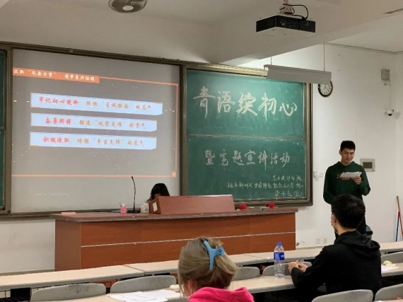 为进一步加强读书社社员管理,3月18日晚437ccm必赢国际官方网站读书社在诚信楼中阶四教室举行了第一次小组会议暨“青言传力量,青语续初心”主题宣讲活动。