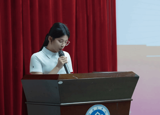 学生代表发言,分享大学感悟与成长,表达对母校和老师的感恩,展现出毕业生勇毅前行的坚定信念,赢得全场热烈掌声。