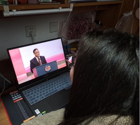 上午九点整,“宪法晨读”活动在庄严的国歌声中拉开了帷幕,紧接着开始进行宪法晨读,教育部领导领读宪法部分条款,全体学生同步跟读;随后,主会场领唱宪法宣传歌曲《宪法伴我们成长》,歌曲通过朗朗上口的旋律渗透宪法知识,激发学生学习宪法的热情;最后教育部领导发表讲话,其中,最高检常务副检察长童建明对同学们提出了四点希望:一是要敬畏法律,不要做“无畏的莽夫”;二是要学习法律,不要做“无知的法盲”;三是要遵纪守法,不要做“冲动的魔童”;四是要依法用法,不要做“沉默的羔羊”。直播过程中,师生聚精会神,认真聆听并做好笔记,用心体会宪法的庄严与神圣,深刻把握我国社会主义法律的精神。