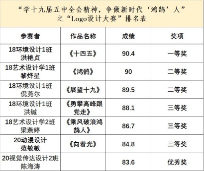 通过“NEXT-2035”LOGO设计大赛,加深了新时代青年艺术学子对十九届五中全会的理解,同时也锻炼个人创意设计能力,在理论和专业学习上也得到了有效融合与实践。本次设计大赛为“学十九届五中全会,争做新时代‘鸿鹄’人”系列活动的最终活动,至此圆满结束!