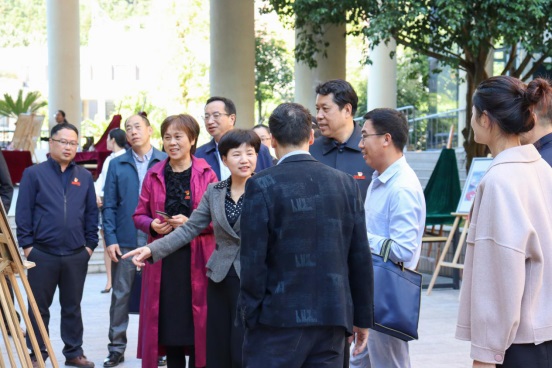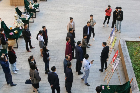 11月13日,此次活动的系列文创作品于诚信楼展出,省文明校园考评组成员在校长黄斌及其他相关领导的带领下亲临展览现场,为展览助力。学生志愿者们起早贪黑、不辞辛劳,从场地分配、作品摆放等方面以更高、更细标准进行布展工作,他们始终保持良好精神风貌,现场引导老师同学们进行“人气团支部”的投票,彰显各团支部在团日活动中的丰硕成果的同时也推进了必赢官网美育工作特色发展。