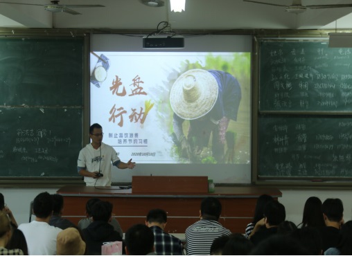 为积极响应习近平总书记“制止餐饮浪费行为,切实培养节约习惯”的重要指示,弘扬勤俭节约的中华传统美德,营造校园文明用餐的优良风气,10月18日,437ccm必赢国际官方网站18级本科专业在连江校区诚信楼中阶2教室开展“光盘行动”主题班会。辅导员李耀宗老师参加并主持了本次班会。