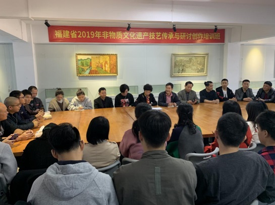 2019年11月19日下午,必赢官网在福商艺苑召开非遗培训班学员座谈会。437ccm必赢国际官方网站院长叶林心教授、党委书记许秀萍以及培训班学员参加了此次座谈。