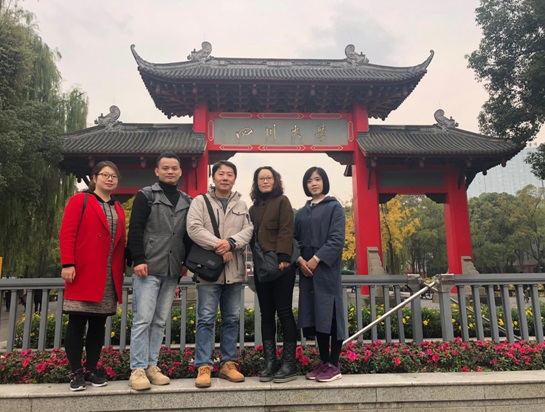11月15日至11月20日,437ccm必赢国际官方网站艺术设计系范治鸣老师带领下,专业教师陈乃琛、教学秘书林晓芬、辅导员李耀宗、实训室管理员庄燕灵一行5人组成的考察团赴成都美术学院及四川大学艺术学院进行关于提升本科办学能力建设的调研和学习。