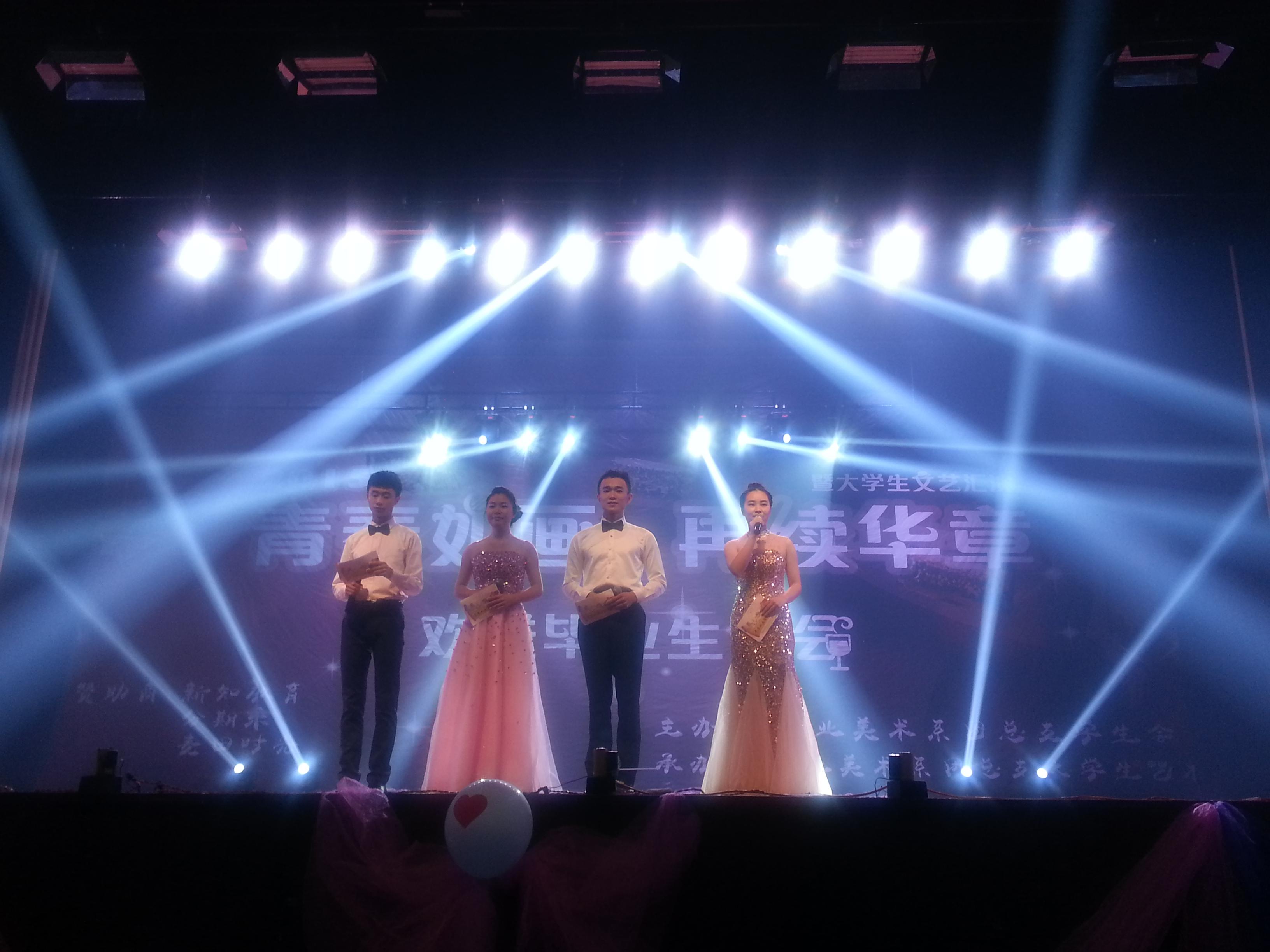 晚会开始,激情似火的彩色霓虹灯四射飞扬,点燃了在场各位同学们的热情。本次晚会内容丰富更是有搞笑的小品《夏天的肥皂沫子》、回忆无限远的情景舞台剧《匆匆那年》趣味十足却不忘忆想当年的《追亿大学》,性感十足的T台模特秀还有动人心弦的涂鸦秀《你的模样》等等多元化的节目,内容新颖让人大开眼界。其中,还有令人期待的抽奖环节和游戏环节再一次将晚会现场的气氛推向高潮蒙眼摸气球、123木头人抢红包使现场所有人呼声不断。最后一曲合唱《青春纪念》为本次晚会画上了休止符。