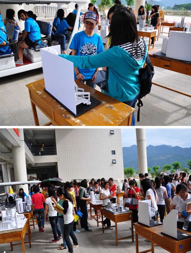 在展览过程中,装潢艺术设计班同学现场为前来观看的老师及同学进行详细的解说,方便老师以及同学能进一步的了解。许多前来观看此次展览的老师同学纷纷拿出相机、手机拍摄本次展览作品,并对作品高度的赞扬,纷纷竖起大拇指,口中说着:“真厉害,真棒!”