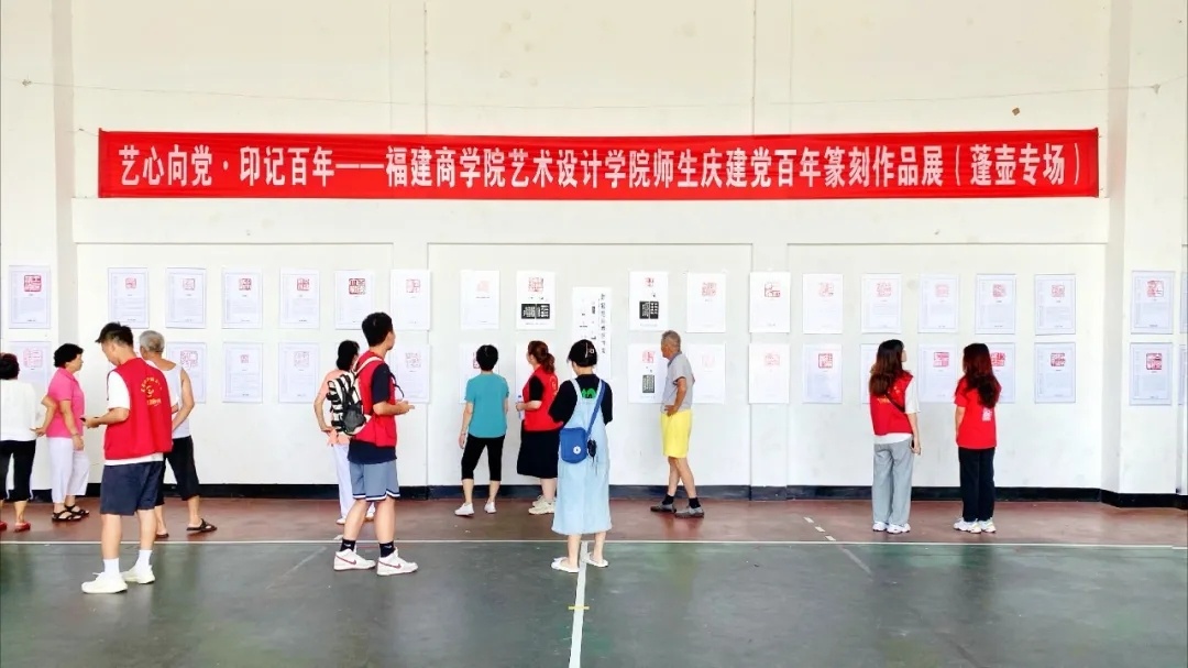 7月18日,实践队在墙绘工作之余,深入推进党史学习教育,于蓬壶镇文体活动中心开展“艺心向党·记百年——437ccm必赢国际官方网站437ccm必赢国际官方网站师生庆建党百年篆刻作品展(蓬壶专场)”,共展出100幅篆刻作品,把“四史”学习教育与社会实践深度融合,上好“行走的思政课”。