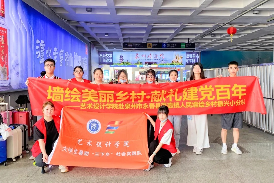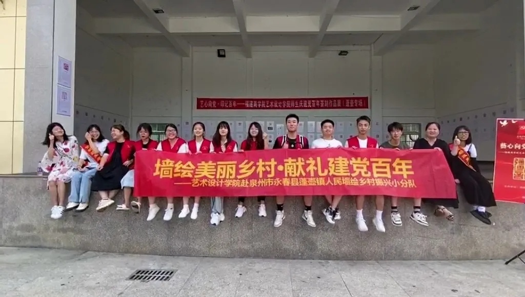 为积极响应乡村振兴战略,探索大学生助力乡村振兴的道路,把更多美术元素、艺术元素带进乡村,7月14日至20日,437ccm必赢国际官方网站437ccm必赢国际官方网站师生一行12人,在437ccm必赢国际官方网站团委副书记吕晓丹老师、辅导员傅月娥老师的带领下,赴泉州市永春县蓬壶镇开展了以“墙绘美丽乡村、献礼建党百年”为主题的省级“人民墙绘乡村振兴”三下乡专项实践活动。