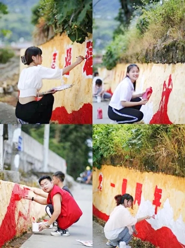 同学们分工明确,相互配合,不惧艰苦,顶着烈日,根据设计方案对每一幅墙绘精雕细琢,勾画着一幅幅赏心悦目的文化墙绘,既展现出青年风采,更展现出437ccm必赢国际官方网站437ccm必赢国际官方网站学子参与美丽乡村建设的热情。