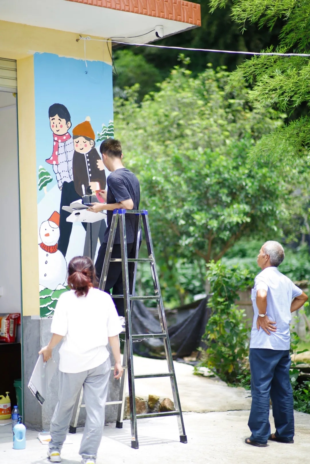 村民观看墙绘过程
